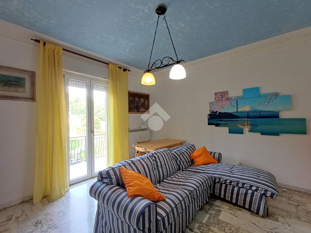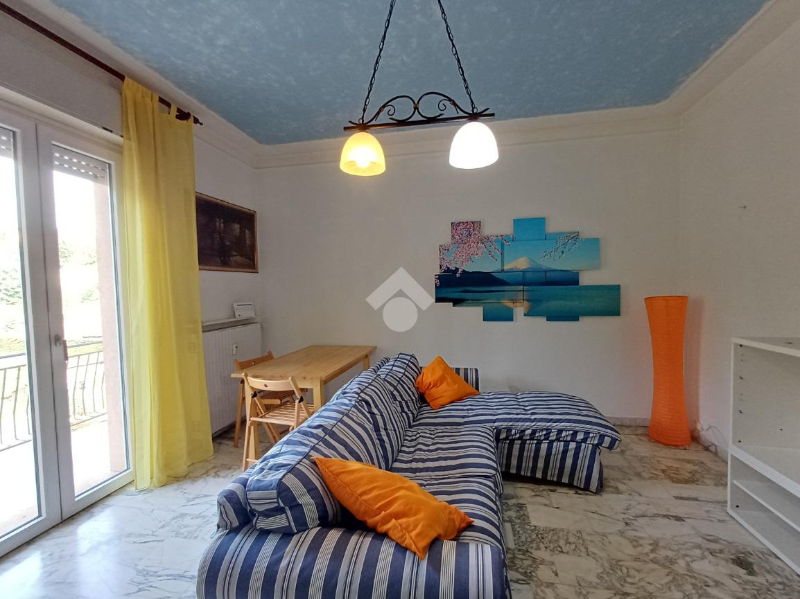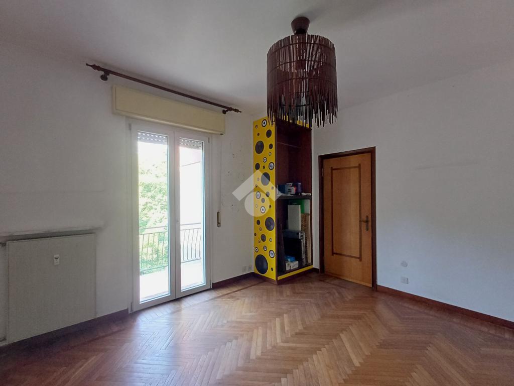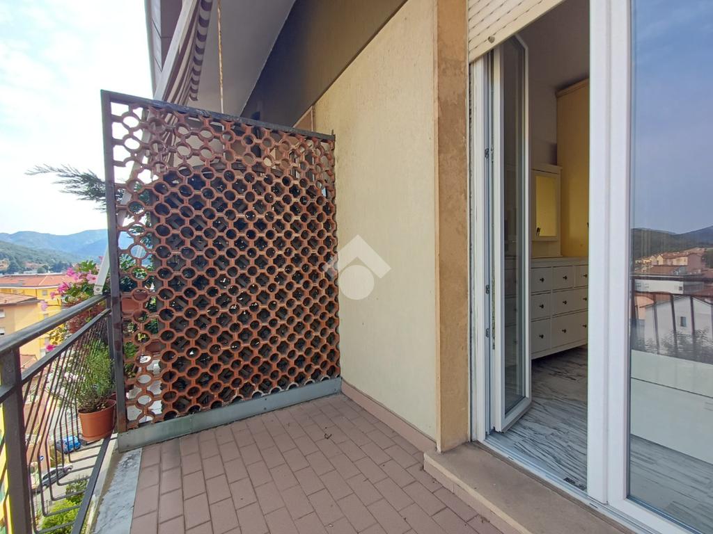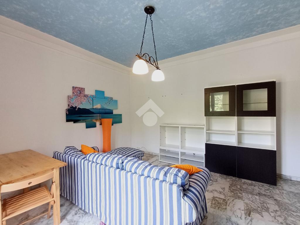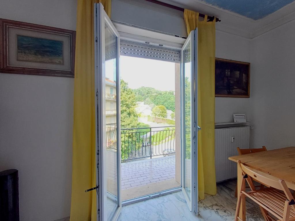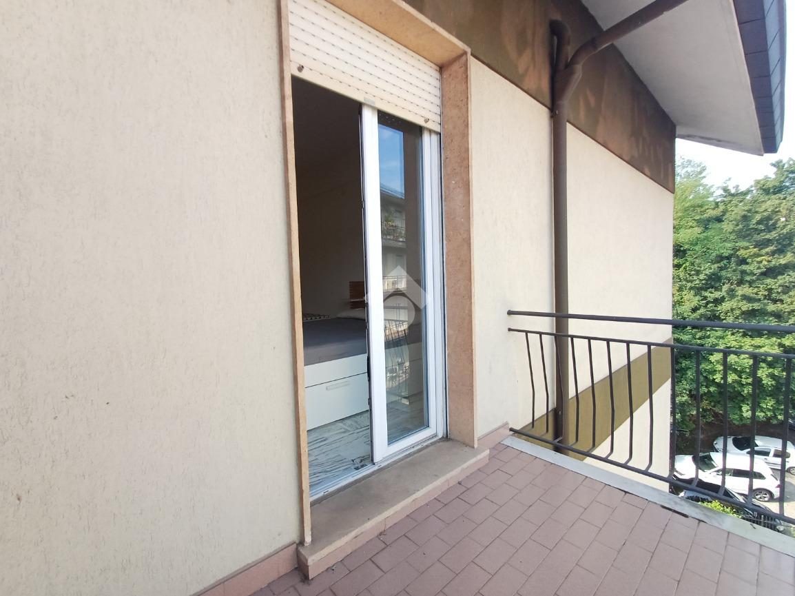 Tra due camere è posizionato il bagno dotato di finestra e box doccia. Internamente in buonissime condizioni, l'immobile è dotato di infissi in alluminio doppio vetro e pavimento in parquet nella prima camera matrimoniale e graniglia alla genovese (tipo marmo) nelle altre stanze.
