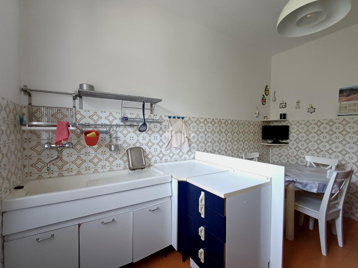 La zona giorno è composta da una cucina abitabile e da un adiacente soggiorno; dallo stesso si può accedere, tramite porta-finestra, al primo balcone.