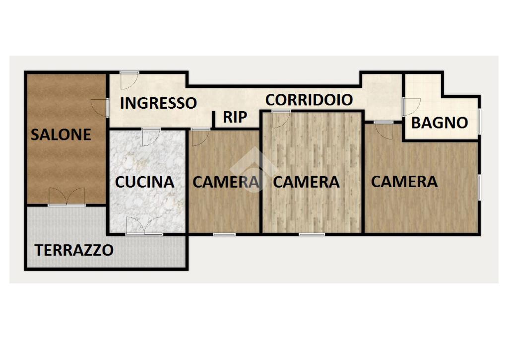 L'appartamento è un ampio 7 vani così disposto al suo interno: