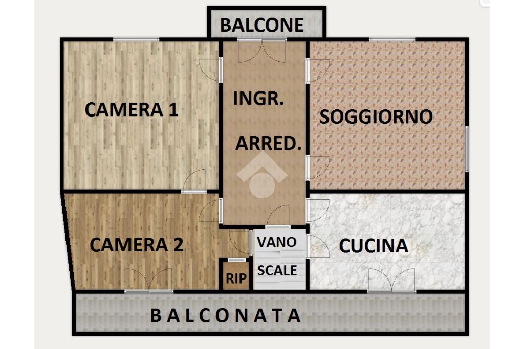 Dal vano scale condominiale esistono tre possibilità di accesso separate alla parte abitativa; una, la principale, nel grande ingresso alla genovese, la seconda e la terza, direttamente in cucina oppure in una delle camere da letto.