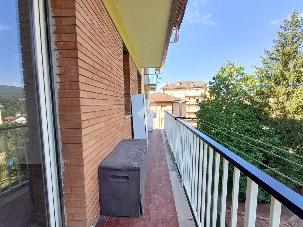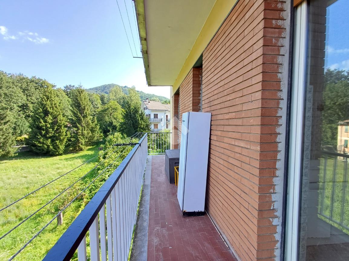 Da ambo gli ambienti è possibile accedere, tramite due porte-finestra alla grande balconata con affaccio nel verde dei giardino che circondano la palazzina,