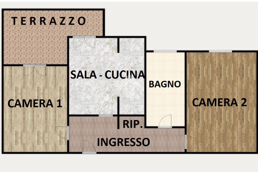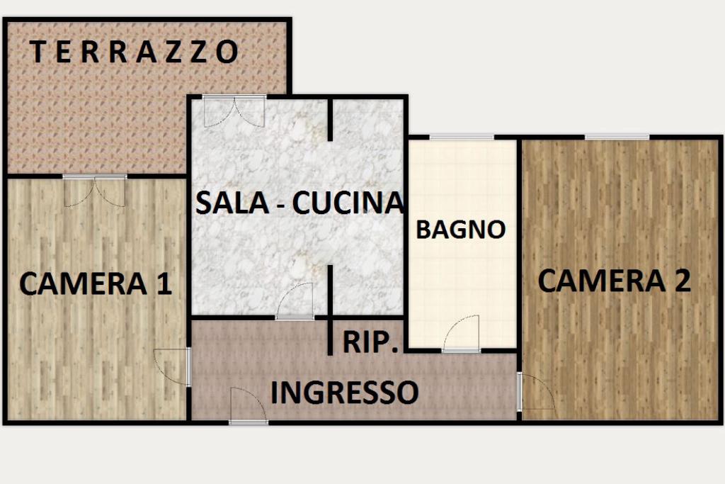 Una delle camere, quella adiacente alla cucina, può eventualmente essere sfruttata come soggiorno a seconda delle esigenze.