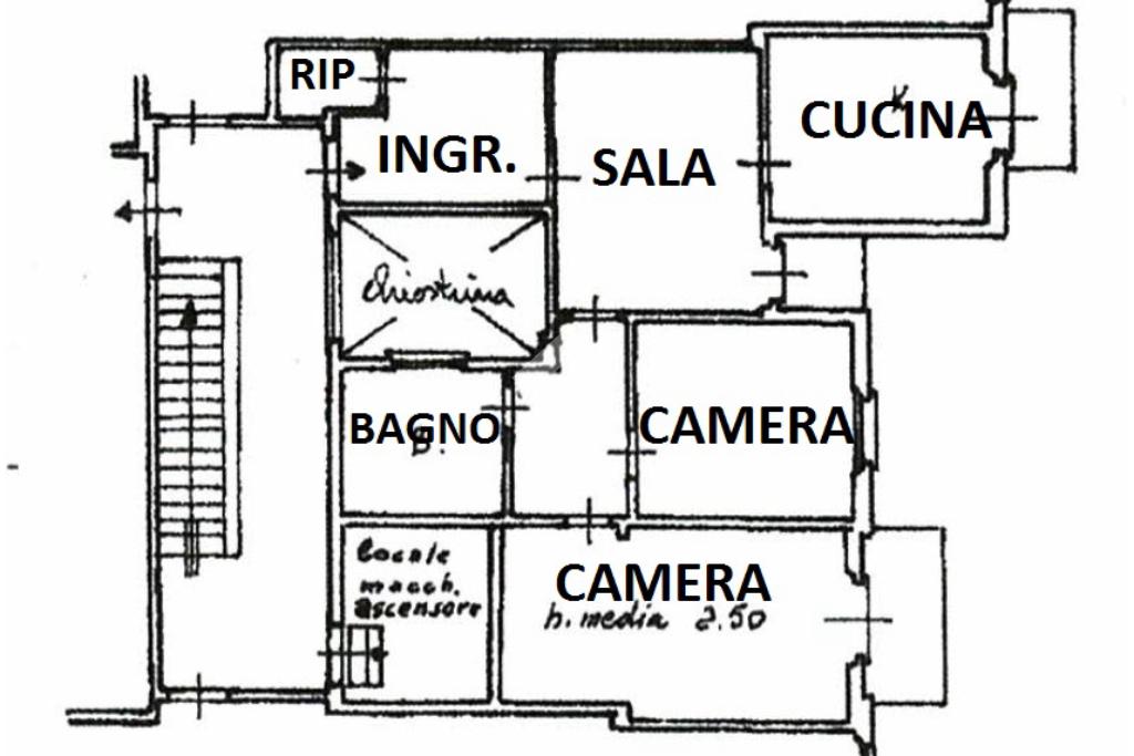 L' appartamento, di generosa metratura calpestabile, è posto al quinto piano di una palazzina ordinata nelle sue parti comuni ed altresì dotata di ascensore.