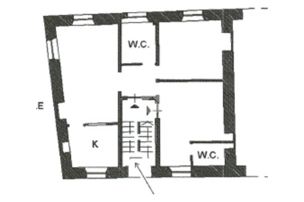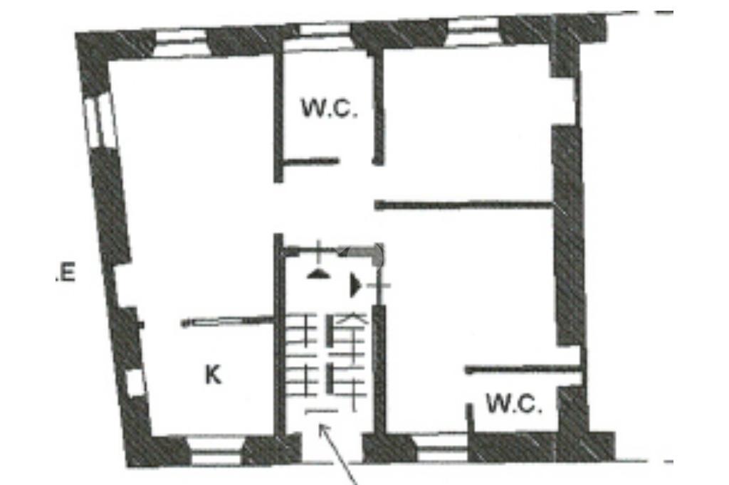 Dal vano scale comune sono presenti due accessi separati, il primo, tramite portoncino blindato, si affaccia nell 'ampio ingresso che, a raggiera, conduce ai vari ambienti della casa, il secondo dà accesso diretto ad una delle due camere.
