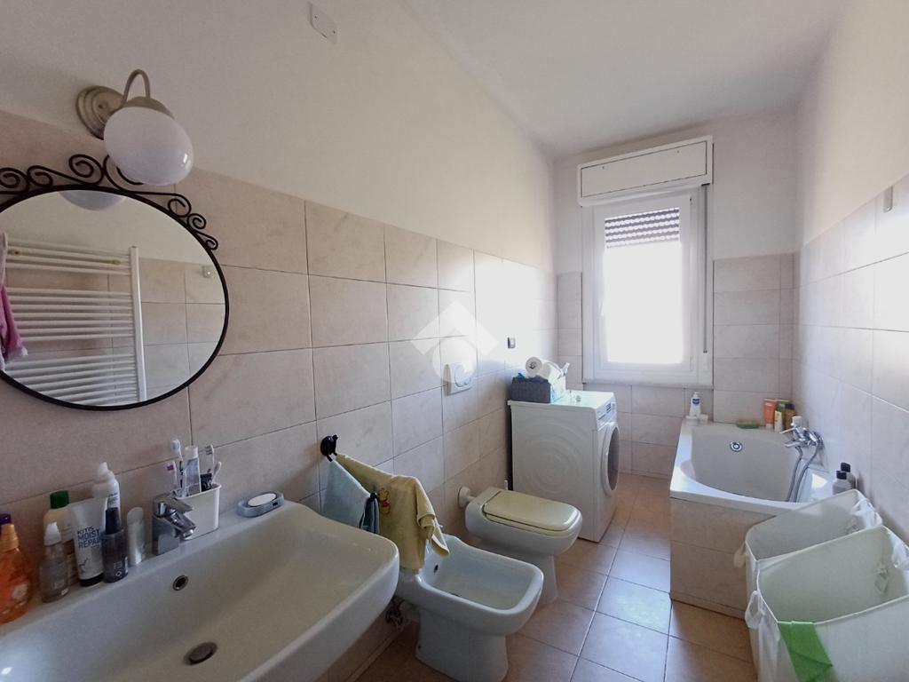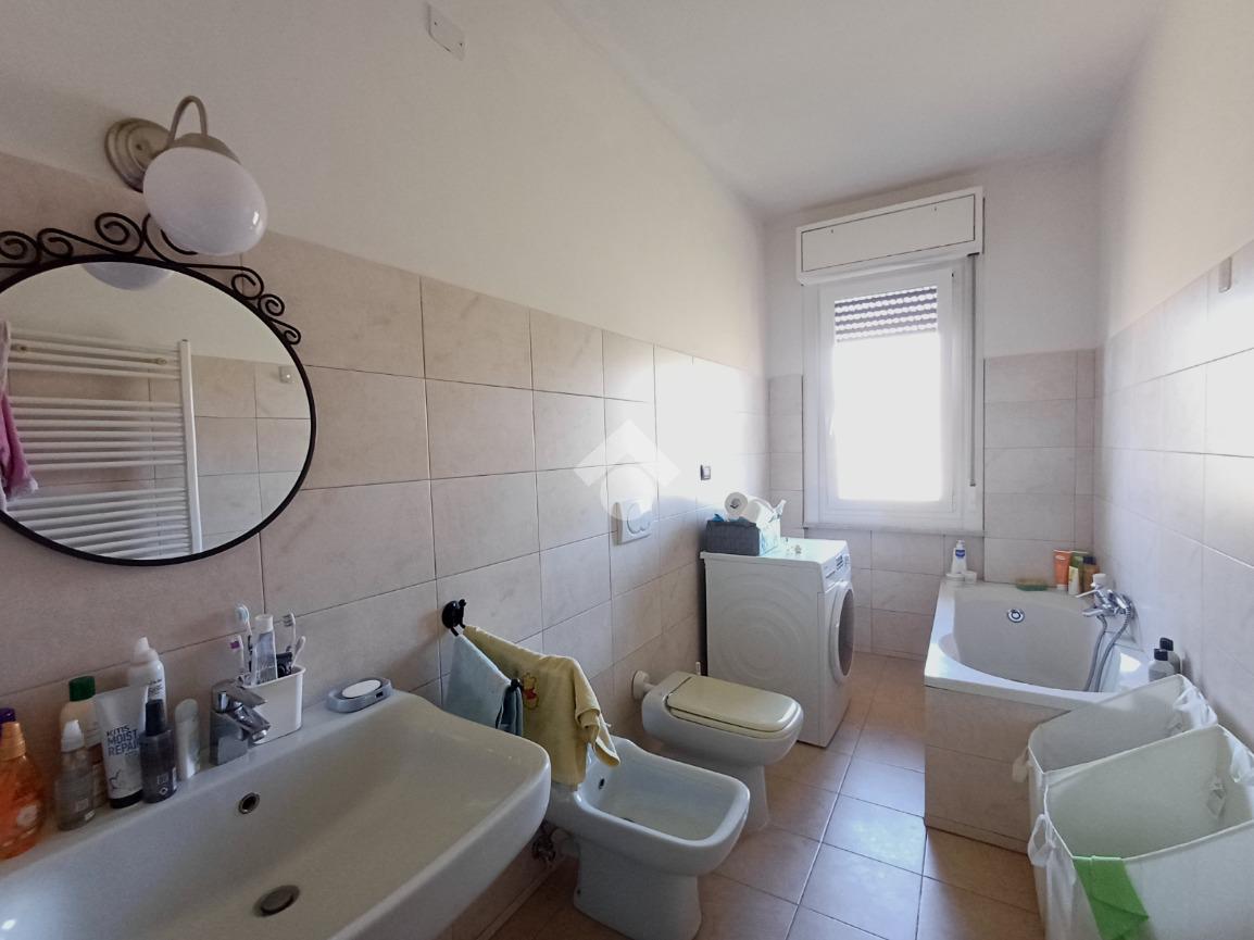 Sono presenti due bagni, il primo posizionato tra le due camere da letto e provvisto di vasca e finestra, il secondo più piccolo e dotato di box doccia è accessibile dal piccolo corridoio e sfruttabile anche come zona lavanderia.