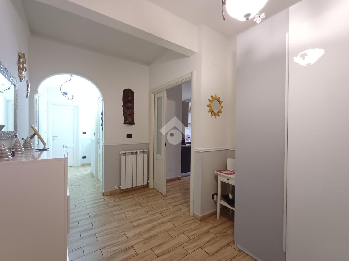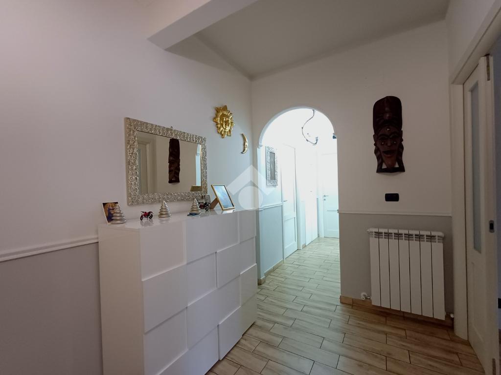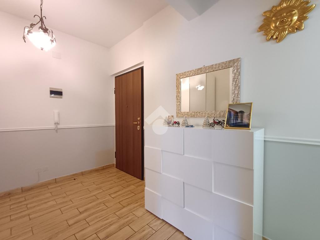 Completamente ristrutturato, l'immobile è così disposto: il portoncino blindato affaccia su un ampio ingresso arredabile, con successivo piccolo corridoio, il quale conduce a raggiera ai vari ambienti della casa.