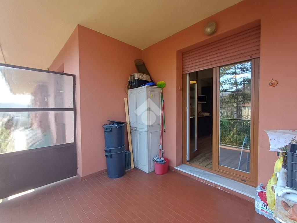 Da ambo gli ambienti è possibile accedere, tramite due porte-finestra, ai due grandi terrazzi vivibili. Uno posto frontalmente davanti alla cucina ed uno ad angolo accessibile dal soggiorno e molto spazioso.