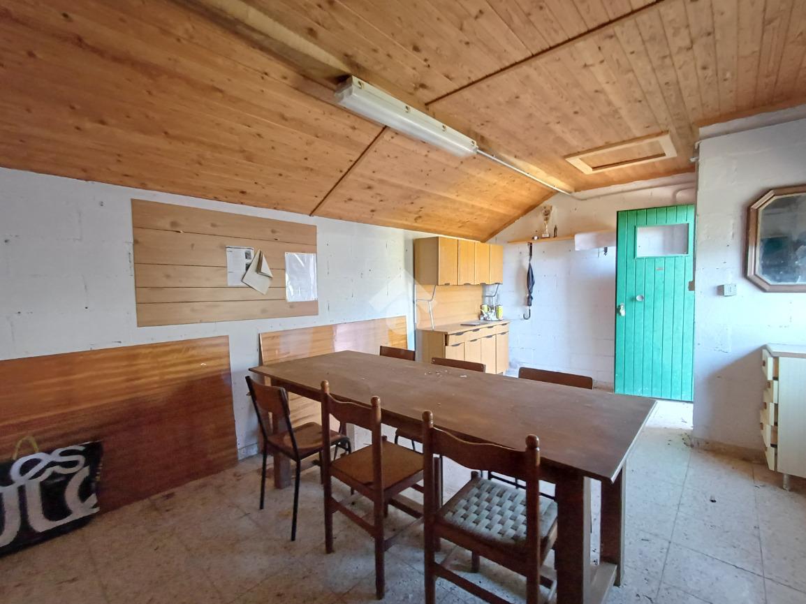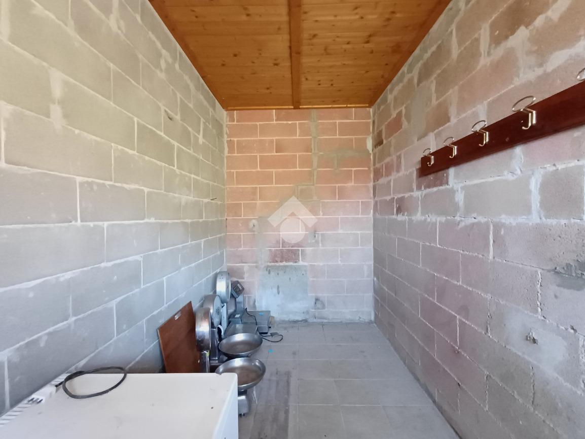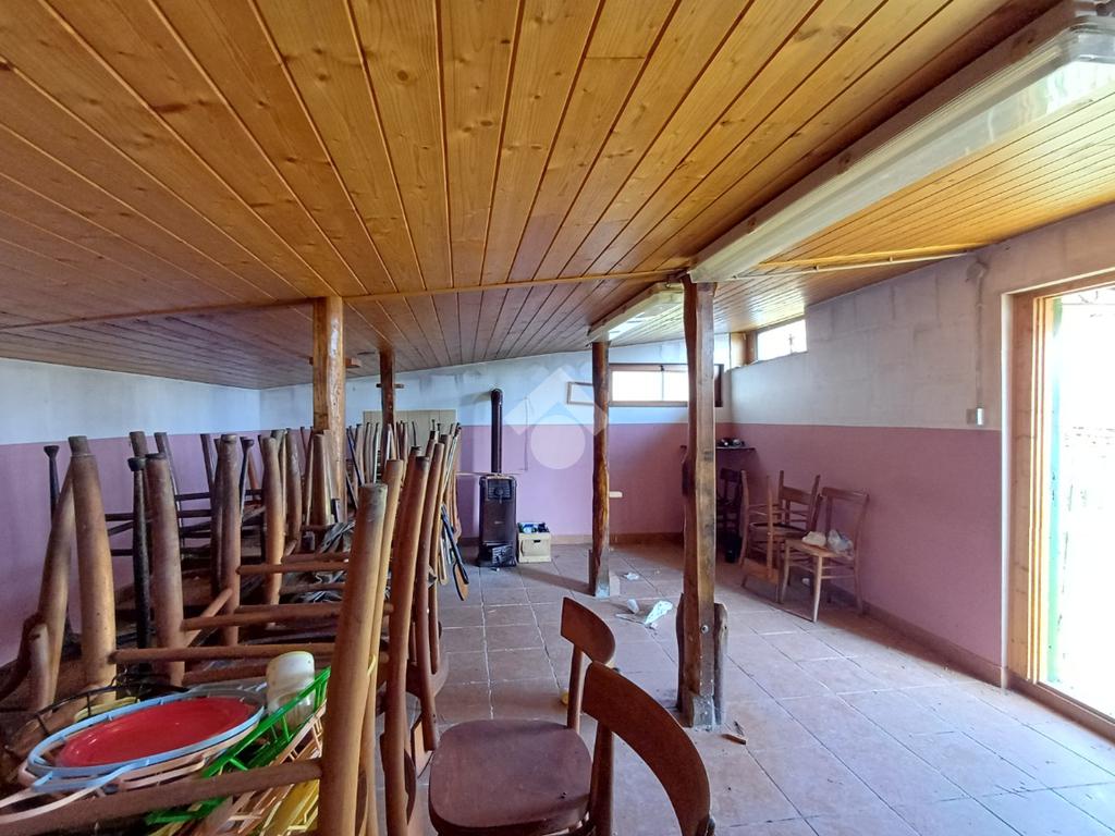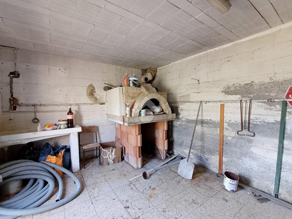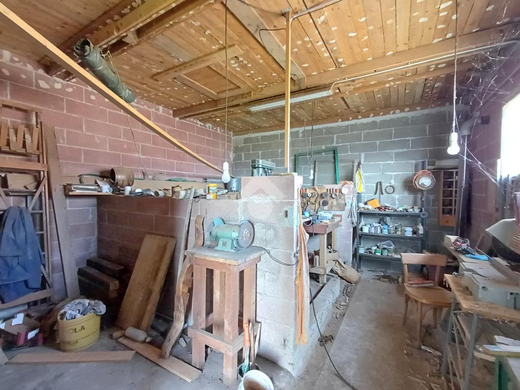 Adiacente ad esso troviamo un'unità su due piani ciascuna di 22 mq; al piano terra la prima, anch'essa dotata di doppio portone (altezza 2,17 mt. larghezza 1,70 mt), è attualmente adibita ad uso taverna con presenza di un forno a legna in muratura, un lavandino ed un piccolo bagno. Al primo piano un locale di pari metratura sfruttabile come ufficio.