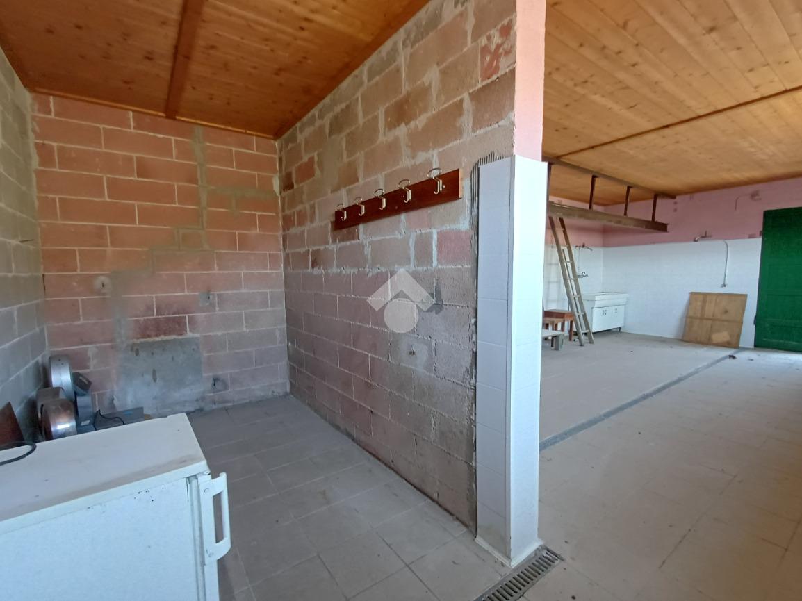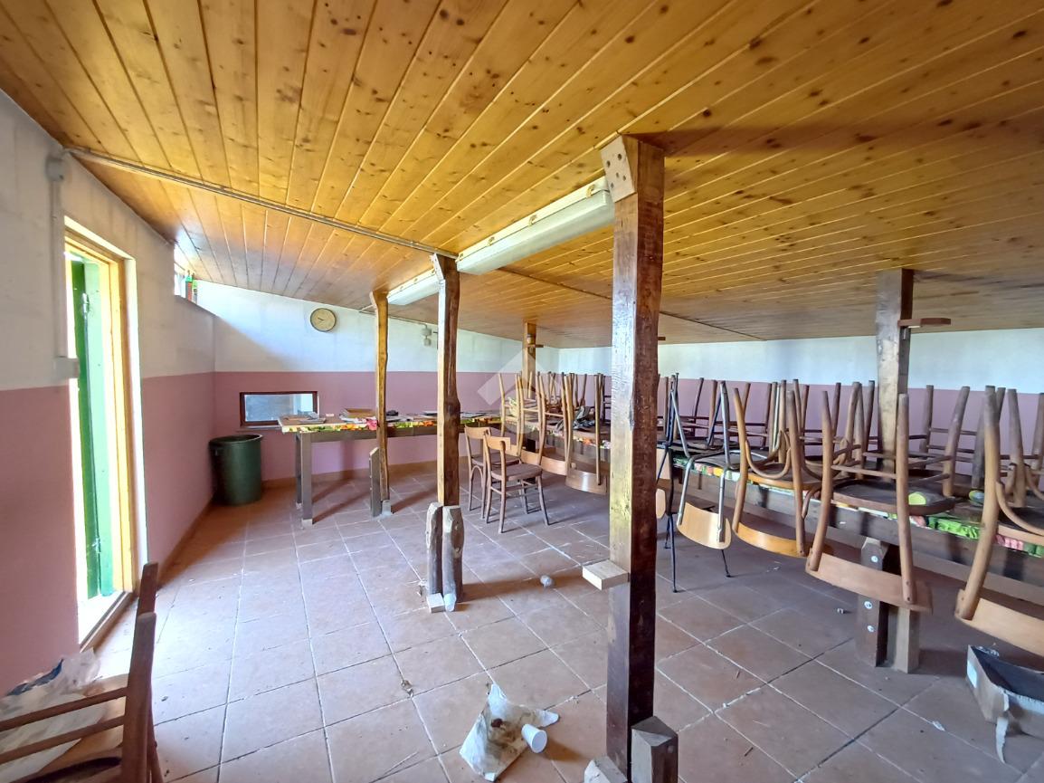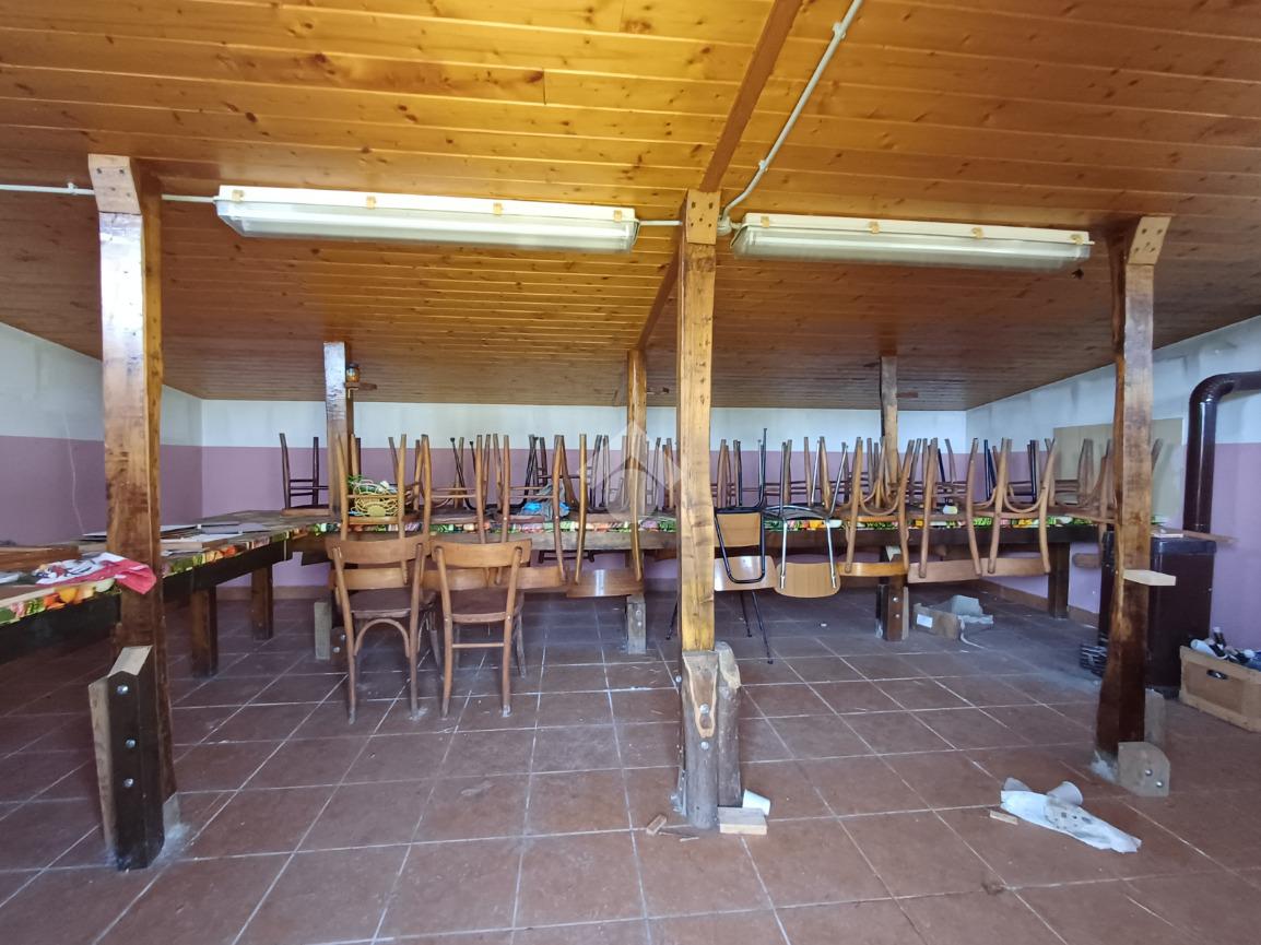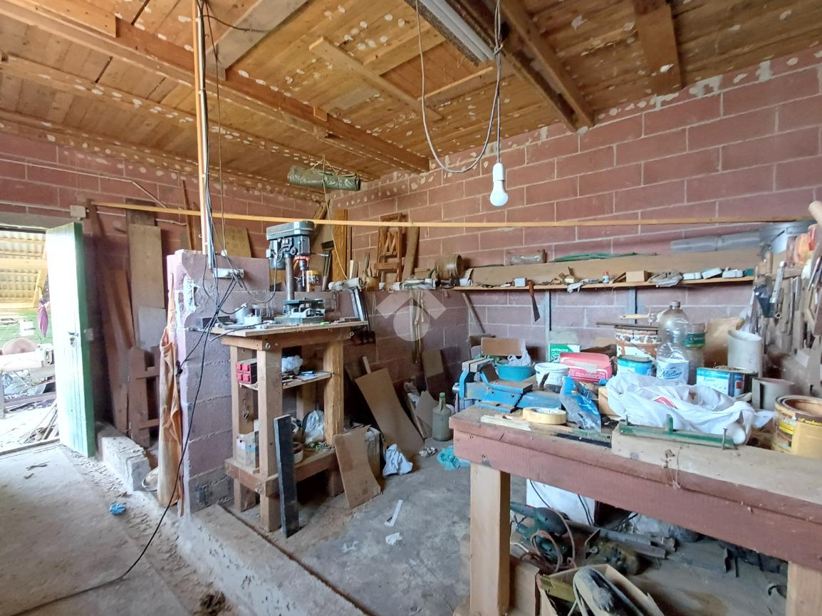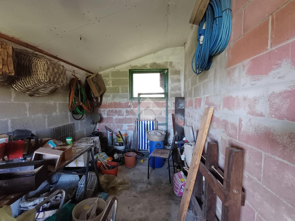 Adiacente ad esso troviamo un'unità su due piani ciascuna di 22 mq; al piano terra la prima, anch'essa dotata di doppio portone (altezza 2,17 mt. larghezza 1,70 mt), è attualmente adibita ad uso taverna con presenza di un forno a legna in muratura, un lavandino ed un piccolo bagno. Al primo piano un locale di pari metratura sfruttabile come ufficio.