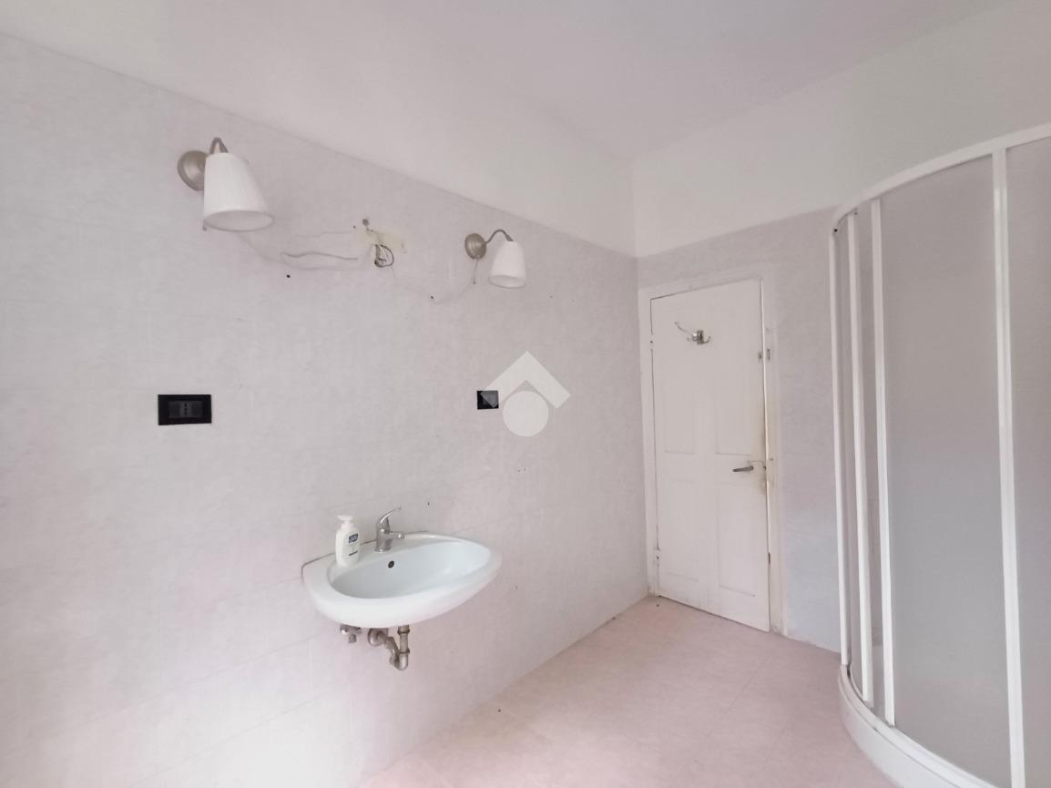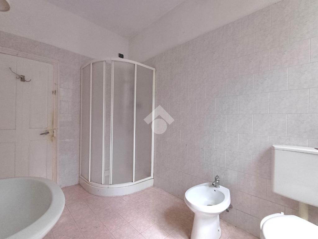 Il bagno, di discrete dimensioni è dotato di finestra e box doccia
