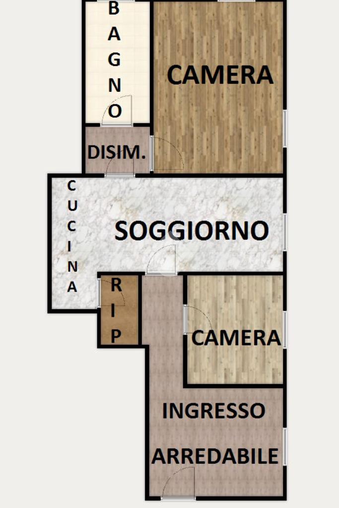 Un ingresso con portoncino blindato, eventualmente arredabile ed un successivo corridoio ci conducono ai vari ambienti della casa.