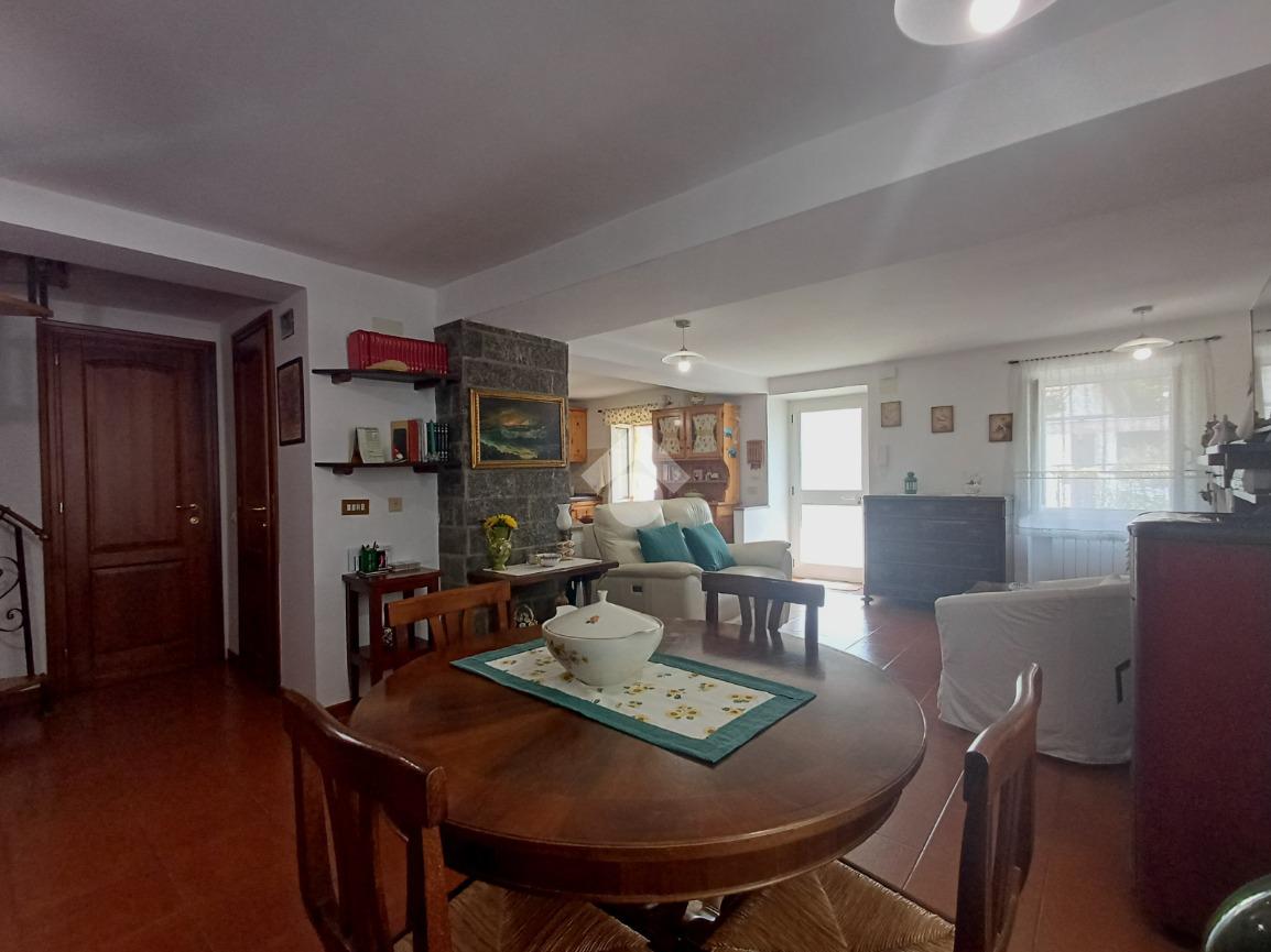 In ingresso, al piano terra, troviamo la zona giorno, composta da un unico grande ambiente, separato solo da piccolo muretto dove sono presenti una cucina abitabile con relativo tavolo da pranzo ed un grande soggiorno doppio provvisto di caratteristico camino a legna.