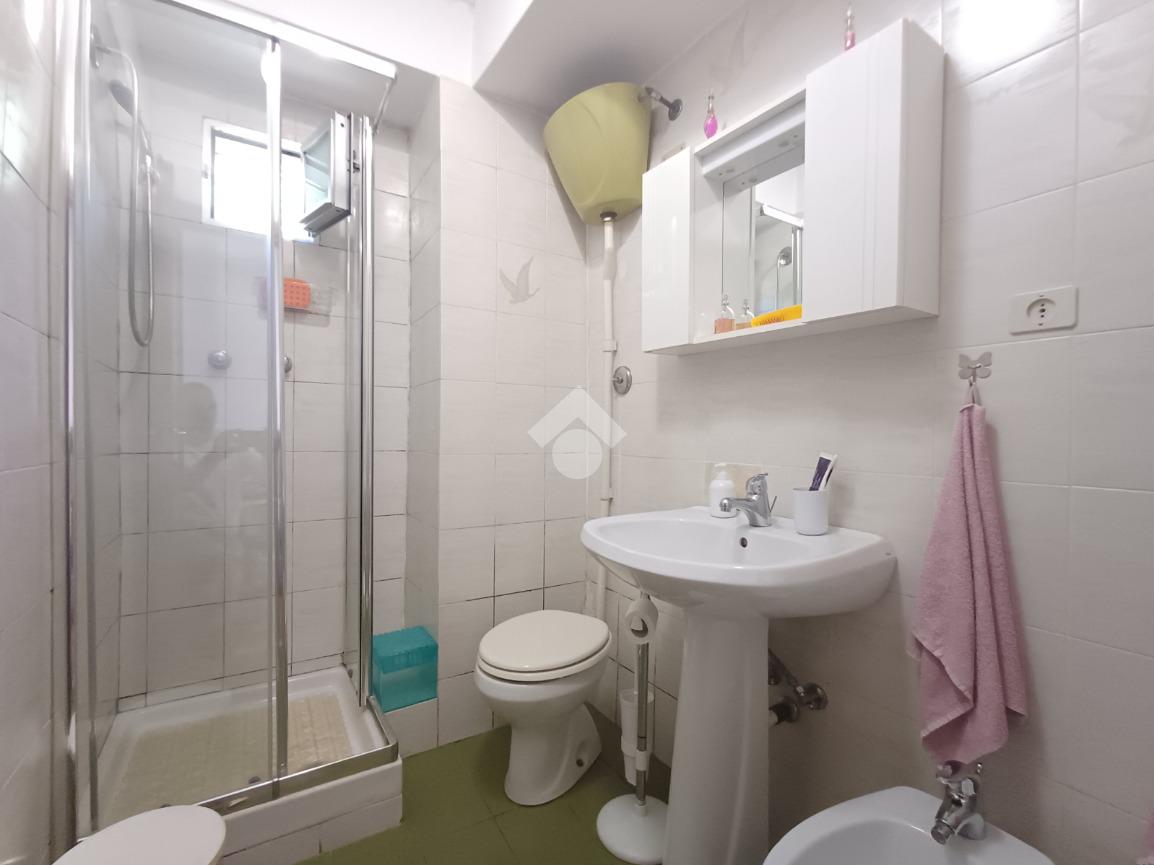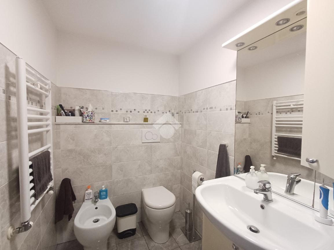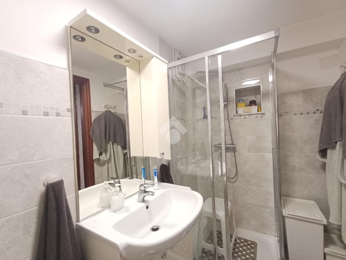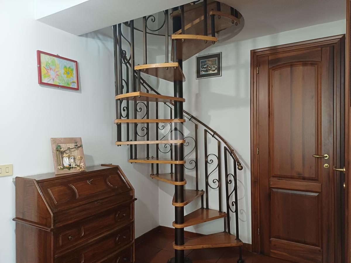 Vicino al soggiorno troviamo il primo bagno, dotato di finestrella e box doccia, una bella scala a chiocciola in legno che conduce al piano superiore ed alla zona notte ed una piccola dispensa.