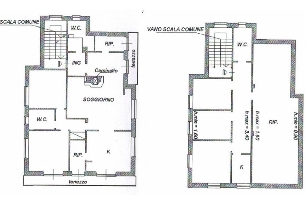 Completano la proprietà il locale caldaia ed il terreno di circa 500 mq posto sul retro con disposizione a fasce, la prima sfruttabile come classico giardino.