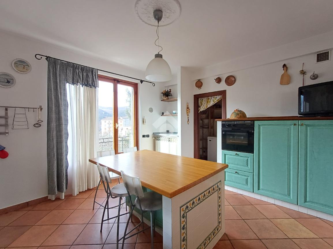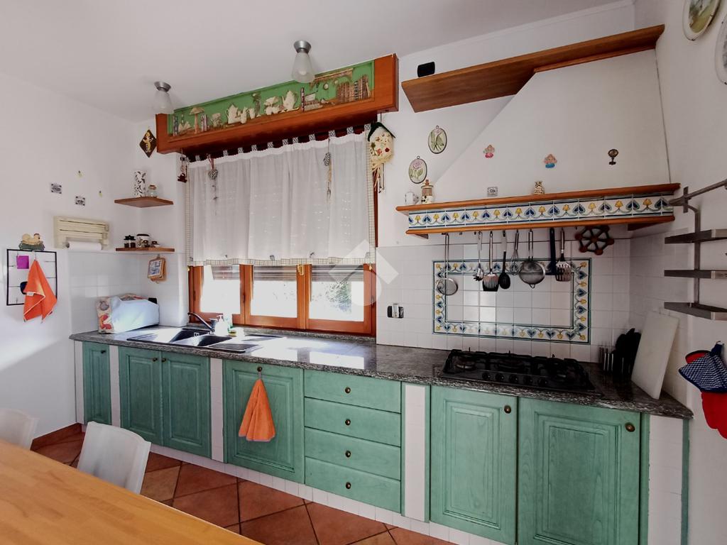 Vicino al salone troviamo un' ampia cucina abitabile ed altresì dotata di grande isola centrale. In cucina è presente una capiente dispensa e da ambo gli ambienti è possibile accedere alla grande balconata principale.