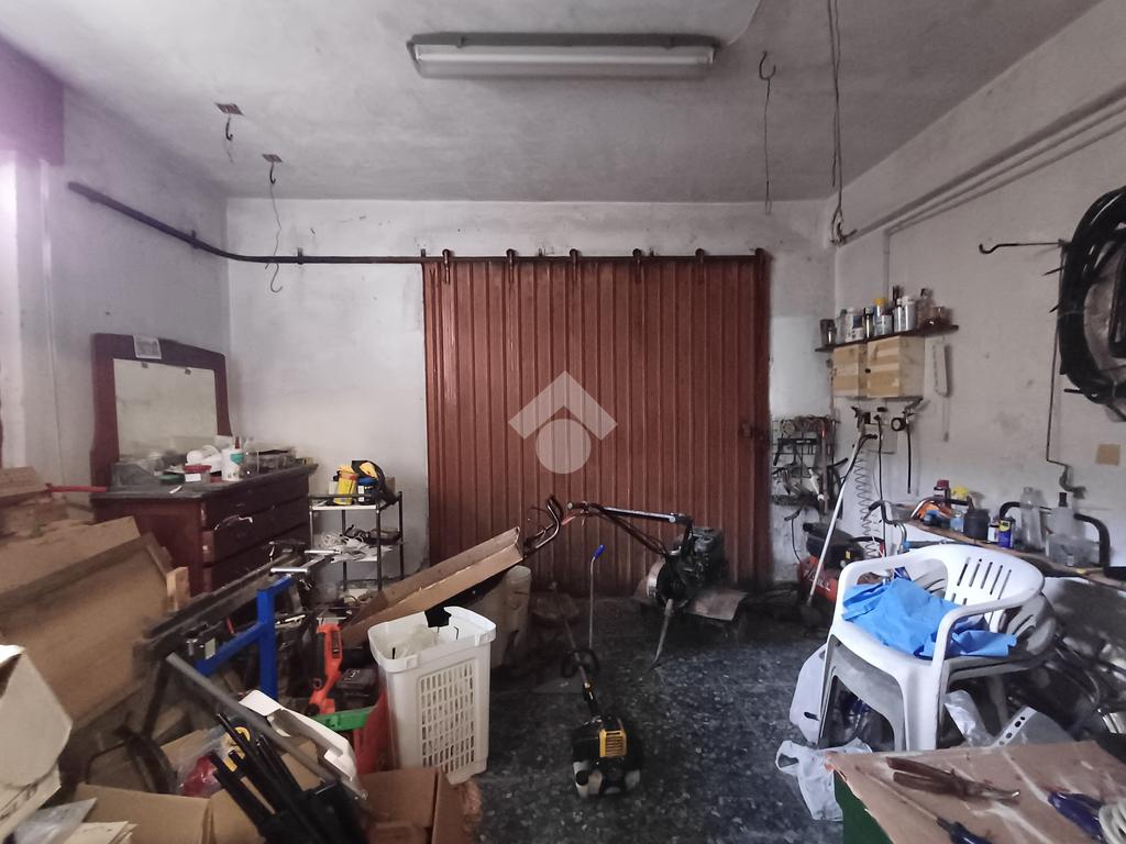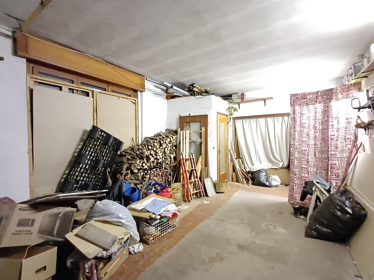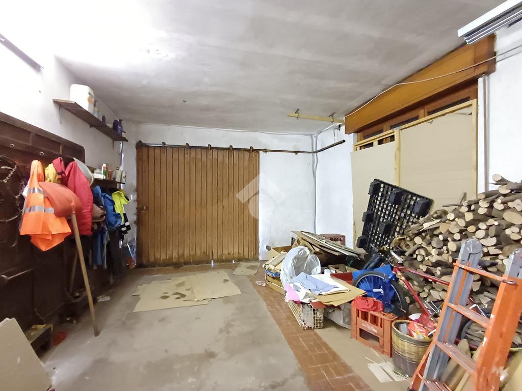 Un portoncino, al piano terra, dà accesso ad un corridoio ed a un vano scale comune, dove due porte consentono l' accesso pedonale ai due grandi locali box ed alla caratteristica taverna.
