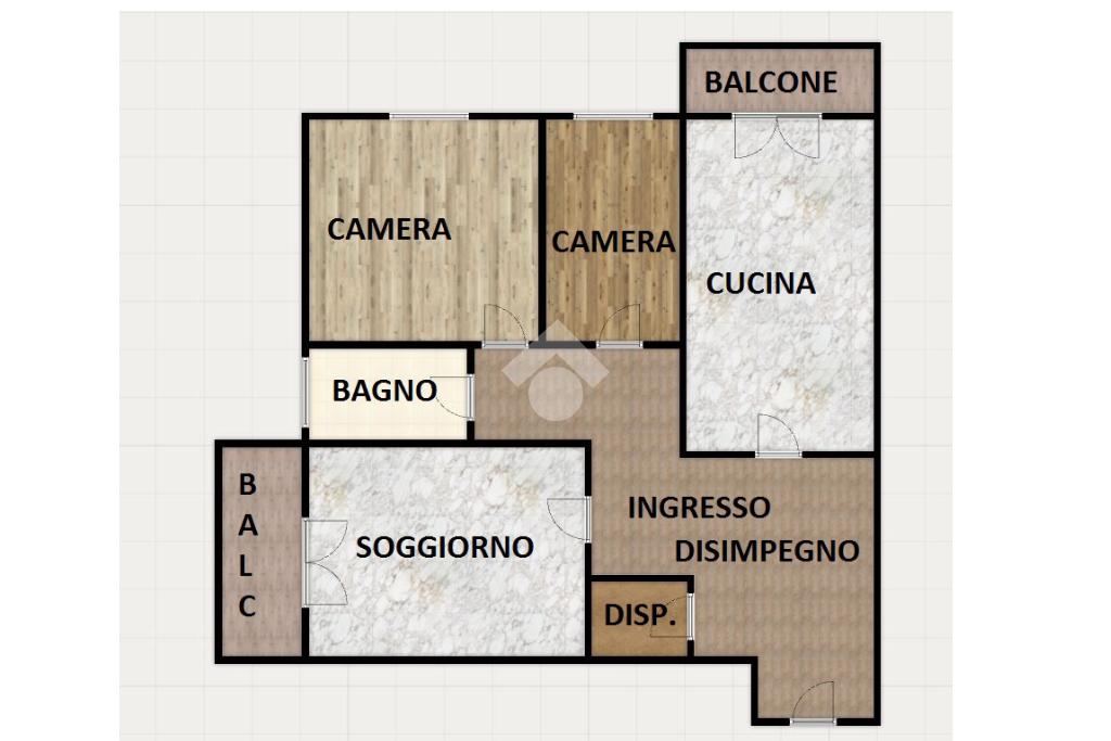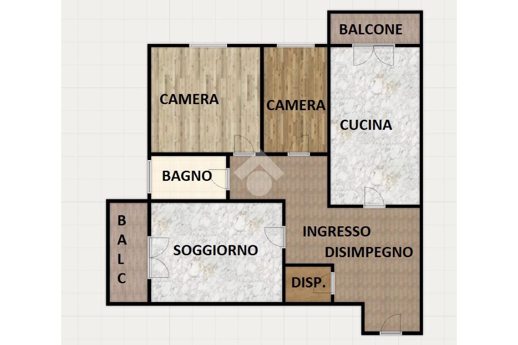 La zona giorno è composta da una cucina abitabile con accesso diretto al primo balcone e dall'adiacente ampio soggiorno. Dallo stesso soggiorno, tramite porta-finestra, si accede al secondo balcone.