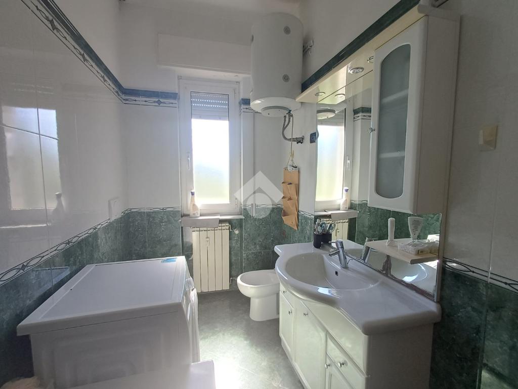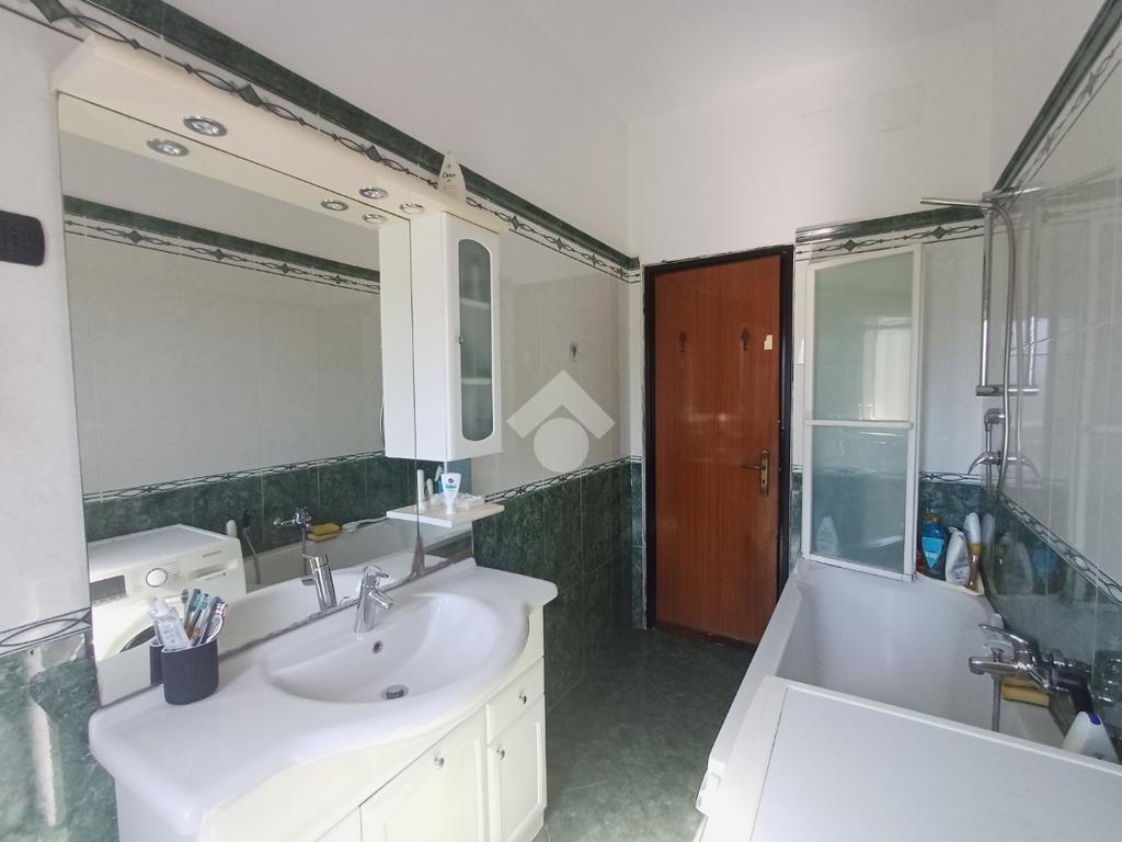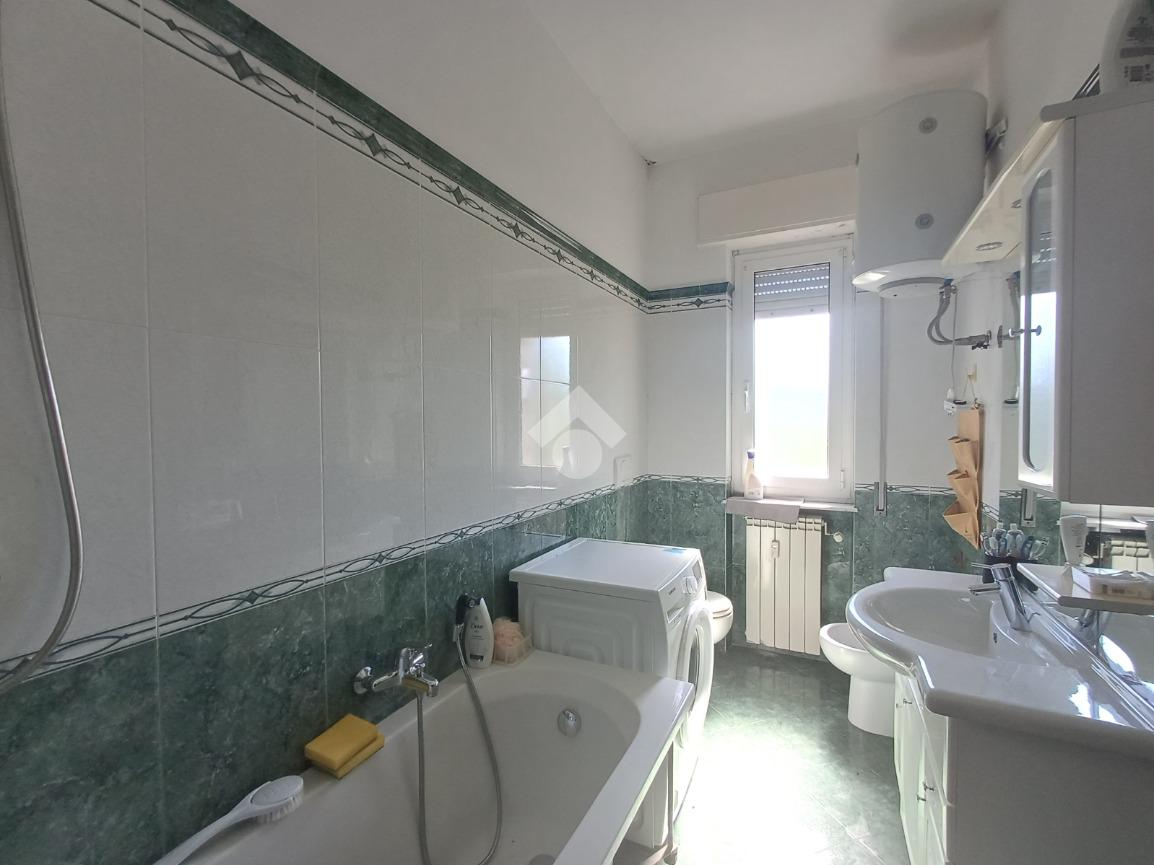 Vicino alla zona notte troviamo il bagno dotato di finestra, vasca e spazio per la lavatrice.