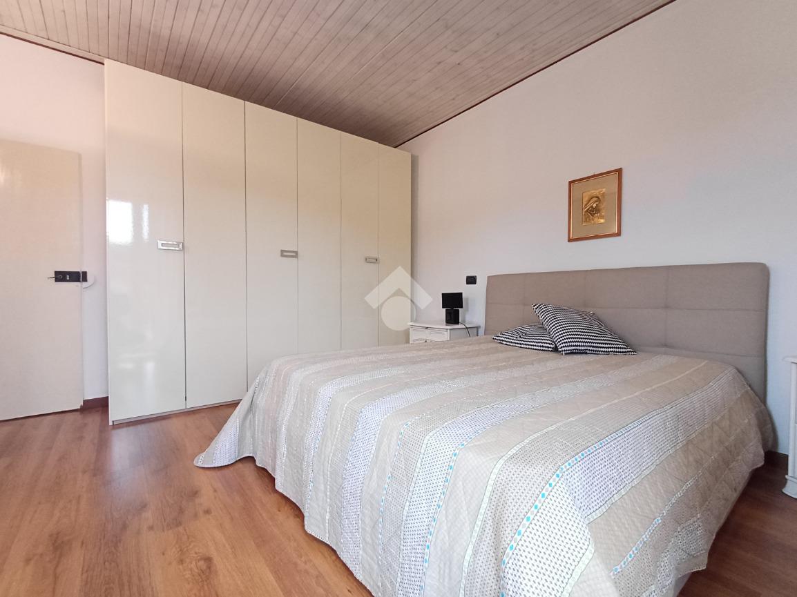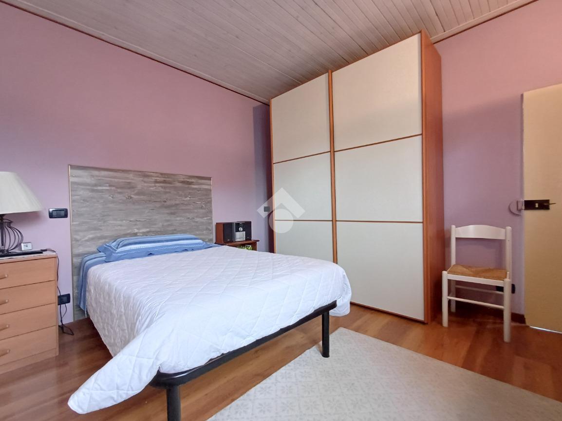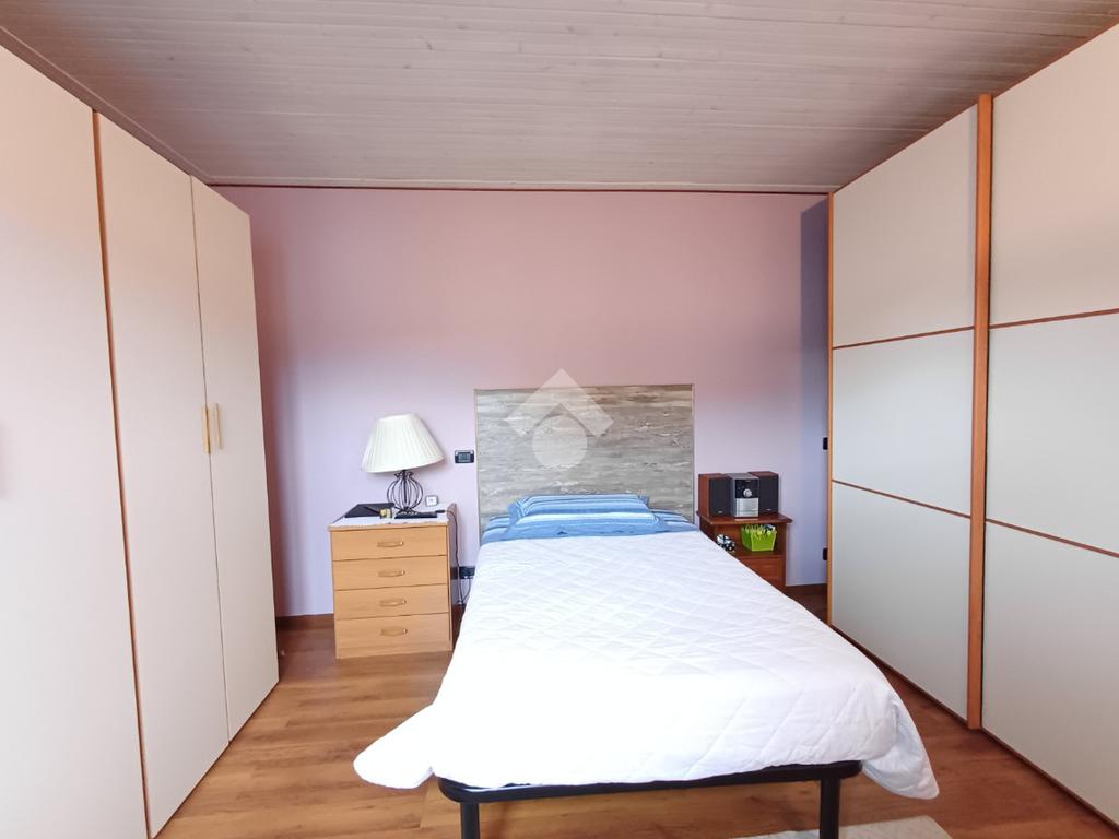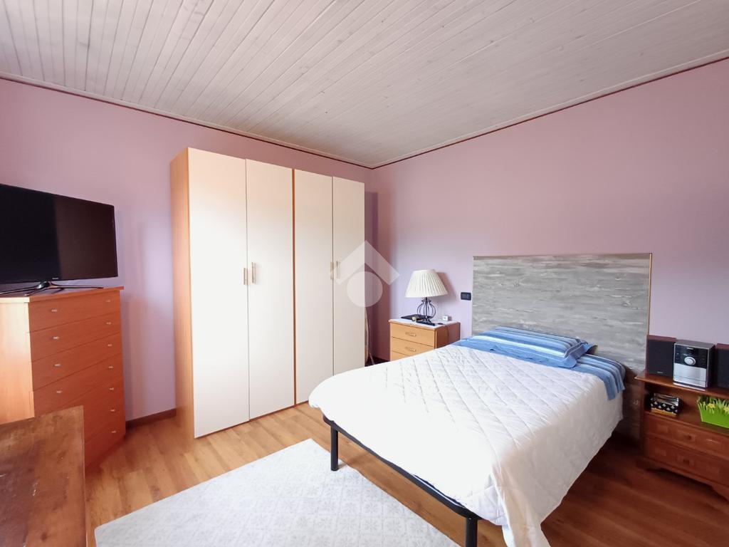 Tra i due ambienti è posizionata una scala (con adiacente ripostiglio sottoscala) che conduce al piano superiore ed alla zona notte composta da due ampie camere matrimoniali; da una delle due camere è possibile accedere, tramite porta-finestra, al balcone con affaccio sul giardino sottostante.