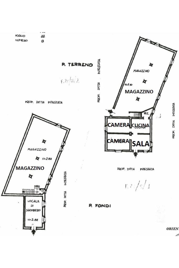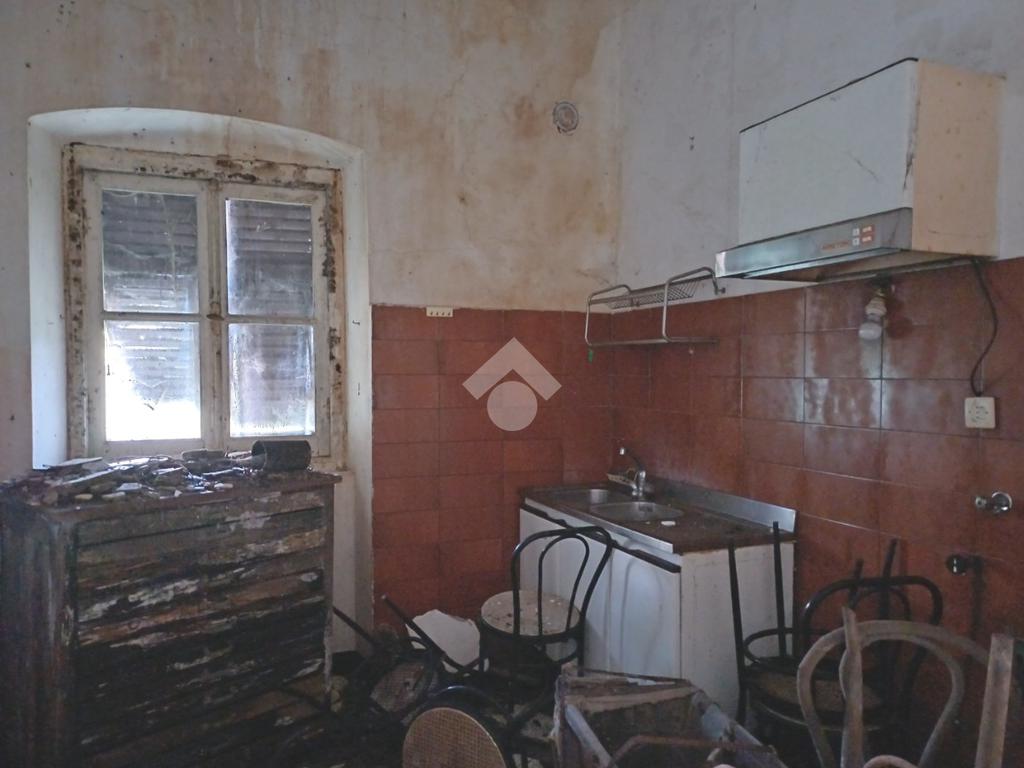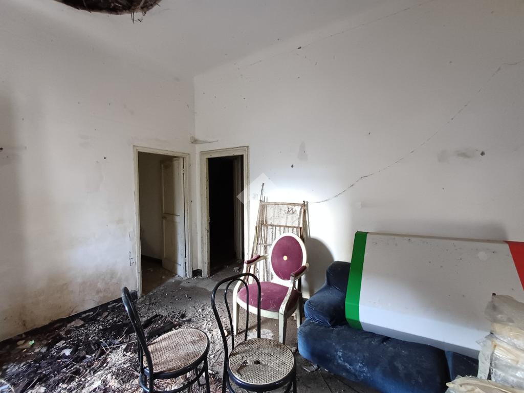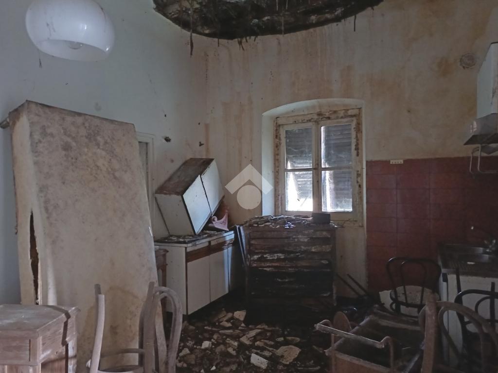 La parte abitativa, completamente da ristrutturare e provvista di giardino antistante è situata al piano terra ed è così composta; la zona giorno comprende un ingresso in soggiorno ed una cucina abitabile mentre la zona notte è composta da due camere matrimoniali.