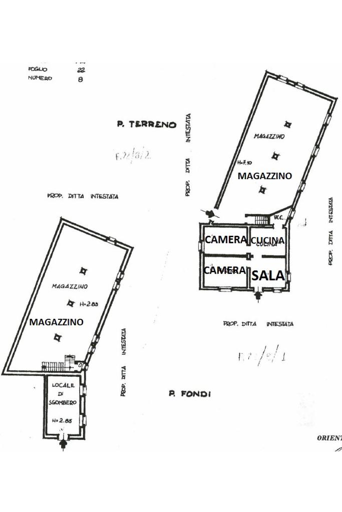 Possibilità di ripristinare, sul retro, un ampia struttura adibita a magazzino di 340 mq, attualmente in completo stato di vetustà (Tetto non più esistente).